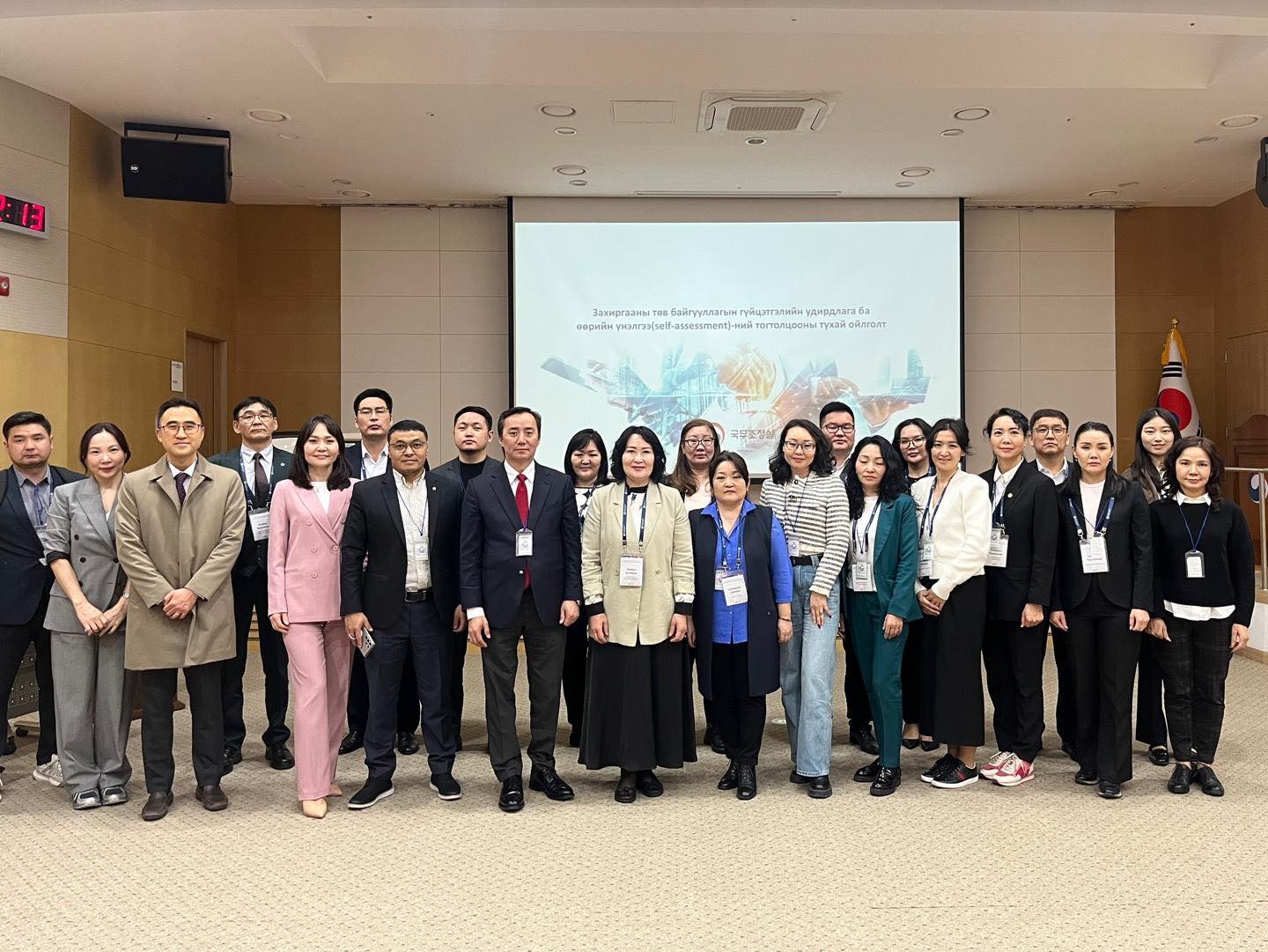 БНСУ-ын Хүний нөөцийн хөгжлийн институтээс зохион байгуулсан туршлага судлах сургалтад Солонгосын төрийн албаны тогтолцоо, идэвхтэй захиргаа ба түүний үнэлгээ, төрийн үйл ажиллагааны үнэлгээний тогтолцоо, үнэлгээ, гүйцэтгэлийн шалгуур үзүүлэлт, захиргааны төв байгууллагын гүйцэтгэлийн удирдлага ба өөрийн үнэлгээний тогтолцоо сэдвүүдээр сургалт явагдаж, захиргааны шилдэг туршлага бүхий Солонгосын далайн эргийн цагдаагийн ерөнхий газар, Гүйцэтгэлийн үнэлгээний шилдэг яам болох Хөдөө аж ахуй, хүнс, хөдөөгийн яамдад амжилттай хэрэгжүүлсэн төрийн үр дүнтэй бодлого болох Сөүл хотын замын хөдөлгөөний мэдээллийн төв, орон нутгийн шилдэг засаг захиргааны байгууллага, Сэжон хотын захиргаанд зочлон сайн туршлагуудаас суралцлаа.