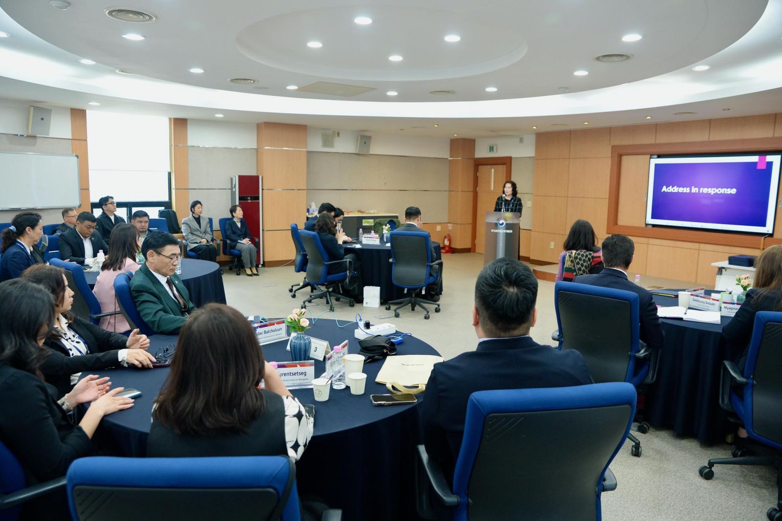 Мөн сургалт зохион байгуулсан БНСУ-ын Хүний нөөцийн хөгжлийн институтийн Глобал боловсролын газрын захирал Jeon Hye-ran энэхүү сургалтад хамрагдсан хорин төрийн албан хаагчдад хандан, Та бүхэн хөтөлбөрийн дагуу сургалтыг амжилттай дүүргэсэн явдлыг өндрөөр үнэлж байгаагаа илэрхийлж, сургалтын явцад минутын ч хоцрогдолгүй, хичээлийн сэдэв бие даалт, танилцуулгуудад бүх оролцогчид идэвх зүтгэлтэй оролцлоо. Өмнө сурч байсан багуудаас хамгийн шилдэг баг байлаа хэмээн онцлоод, хамтран ажилласанд талархаж буйгаа илэрхийллээ.